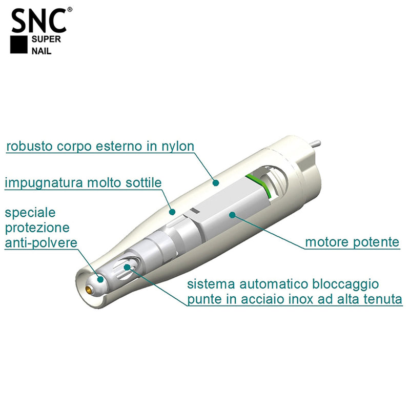 FRESA ASPIRANTE VORTIX 3 - 40.000 GIRI per ricostruzione unghie, frese e punte professionali per onicotecnica, marchio SNC Super Nail CenterManipolo interno ed esterno FRESA ASPIRANTE VORTIX 3 - 40.000 GIRI per ricostruzione unghie, frese e punte professionali per onicotecnica, marchio SNC Super Nail Center